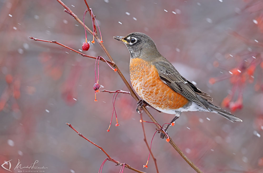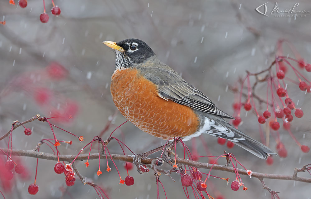Merle d'Amérique, American Robin, Turdus migratorius, L=25 cm, E=43 cm, P=77 g